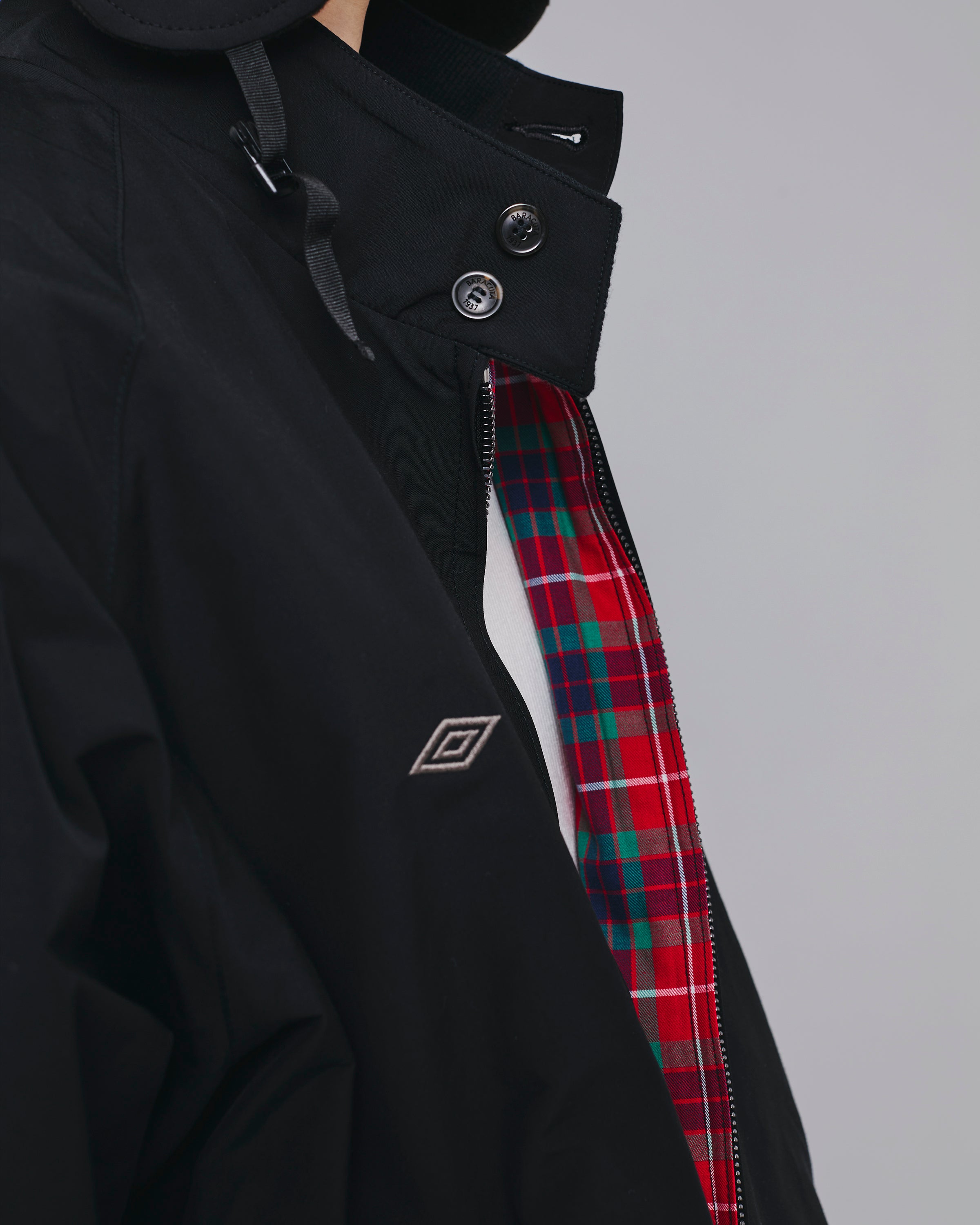 コットンポリエステルの混紡糸を高密度に織り込んだBARACUTAオリジナルの伝統あるBARACUTA CLOTHを使用。裏地には1938年からBaracutaジャケットに使用されている、Fraser Tartan(フレーザータータン)を使用。