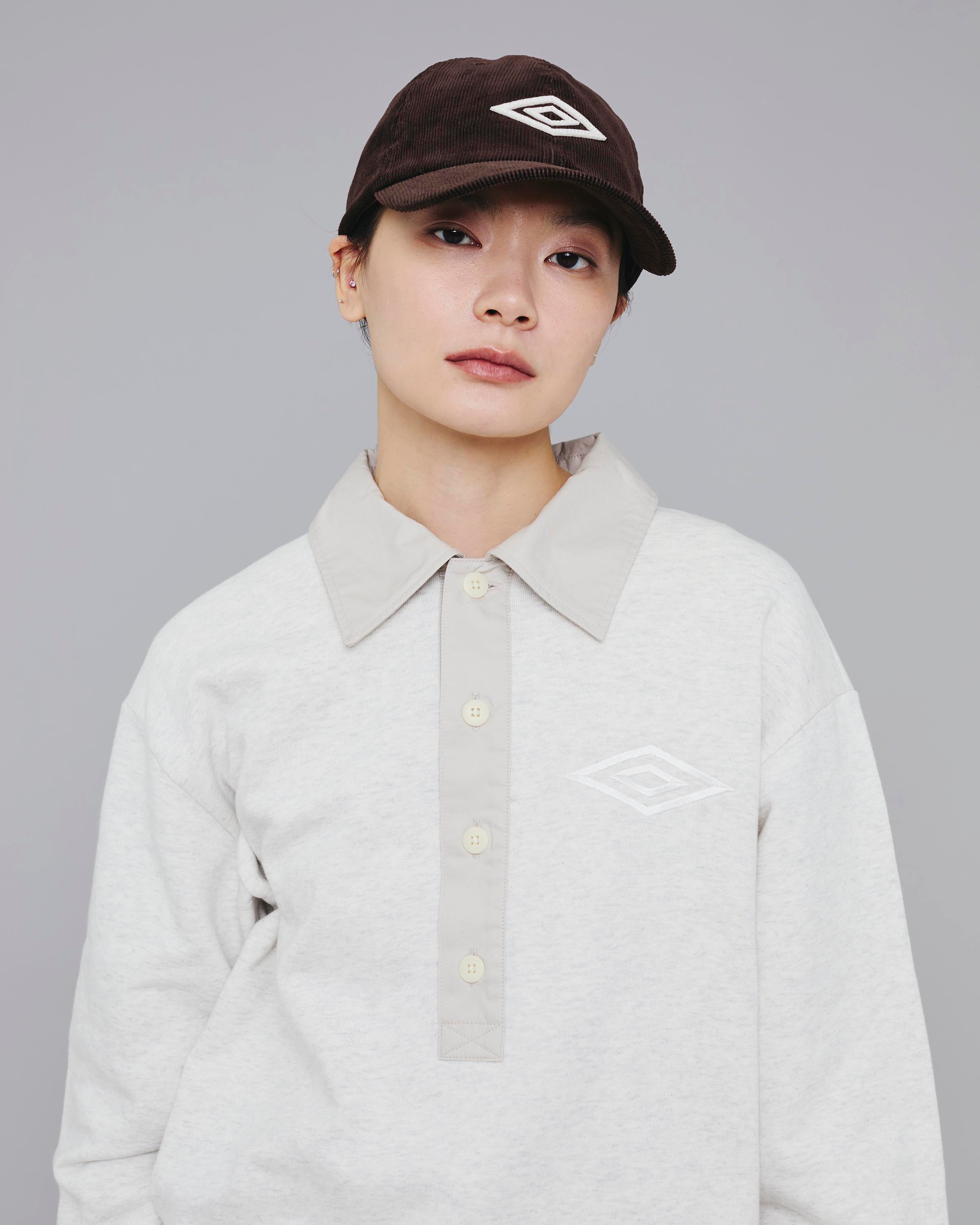 立体的なダブルダイヤモンド刺繍が特徴的なコーデュロイキャップです。シンプルながら存在感を放つデザインです。