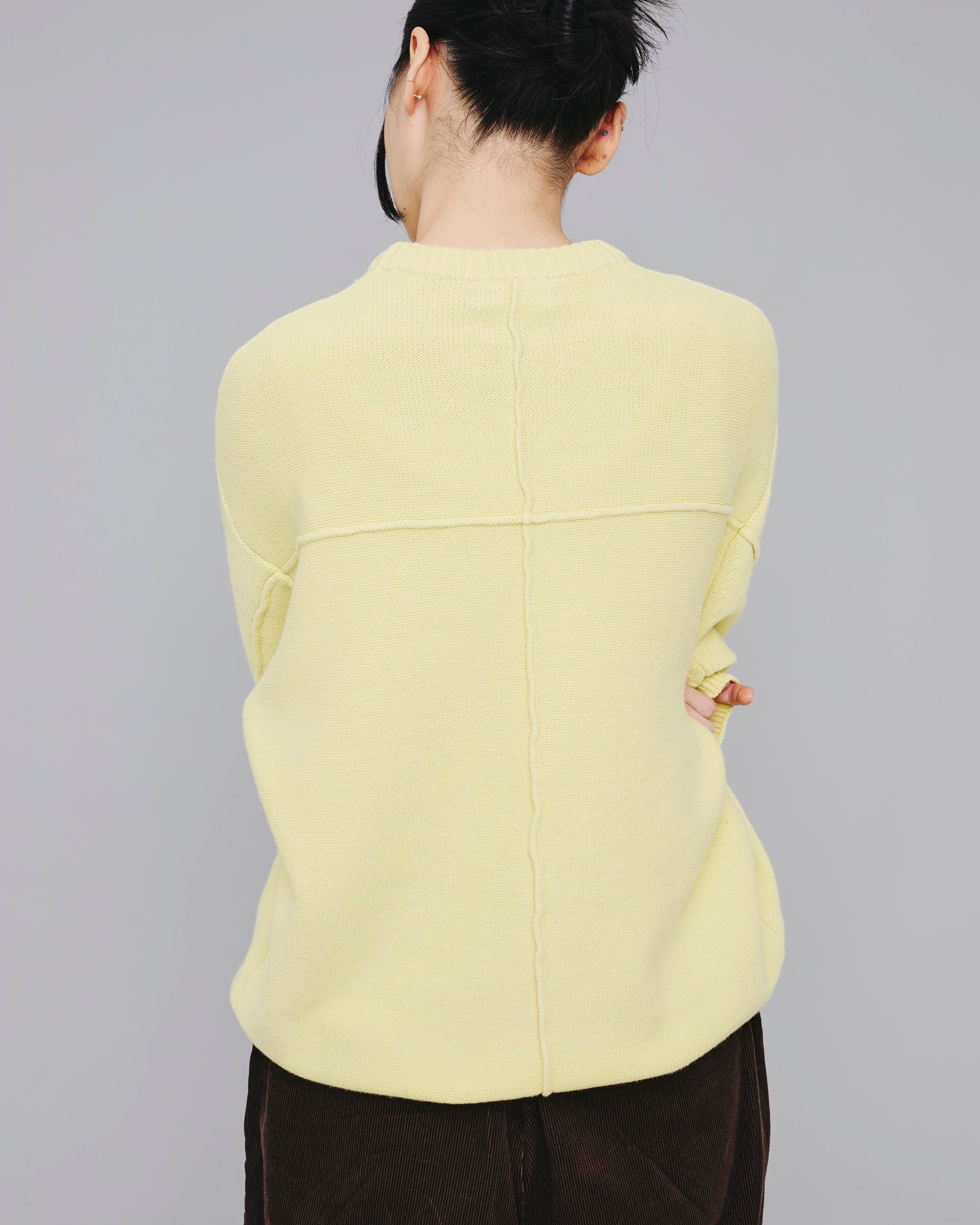 製品染め後にストーンウォッシュを施し、独特の表情を持たせたニットプルオーバーです。身幅はやや広めのボックスシルエットで、リラックス感のある着心地を実現しています。