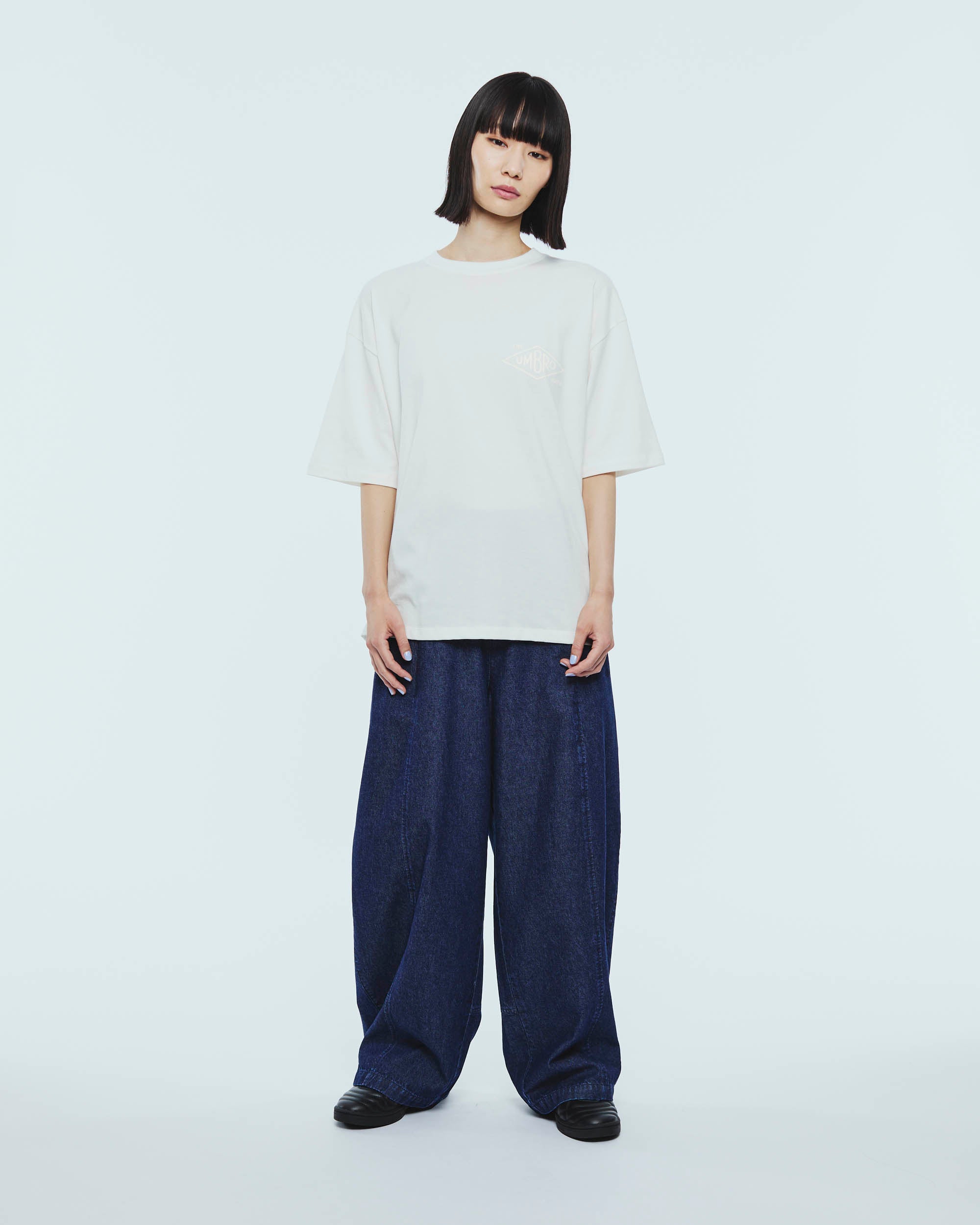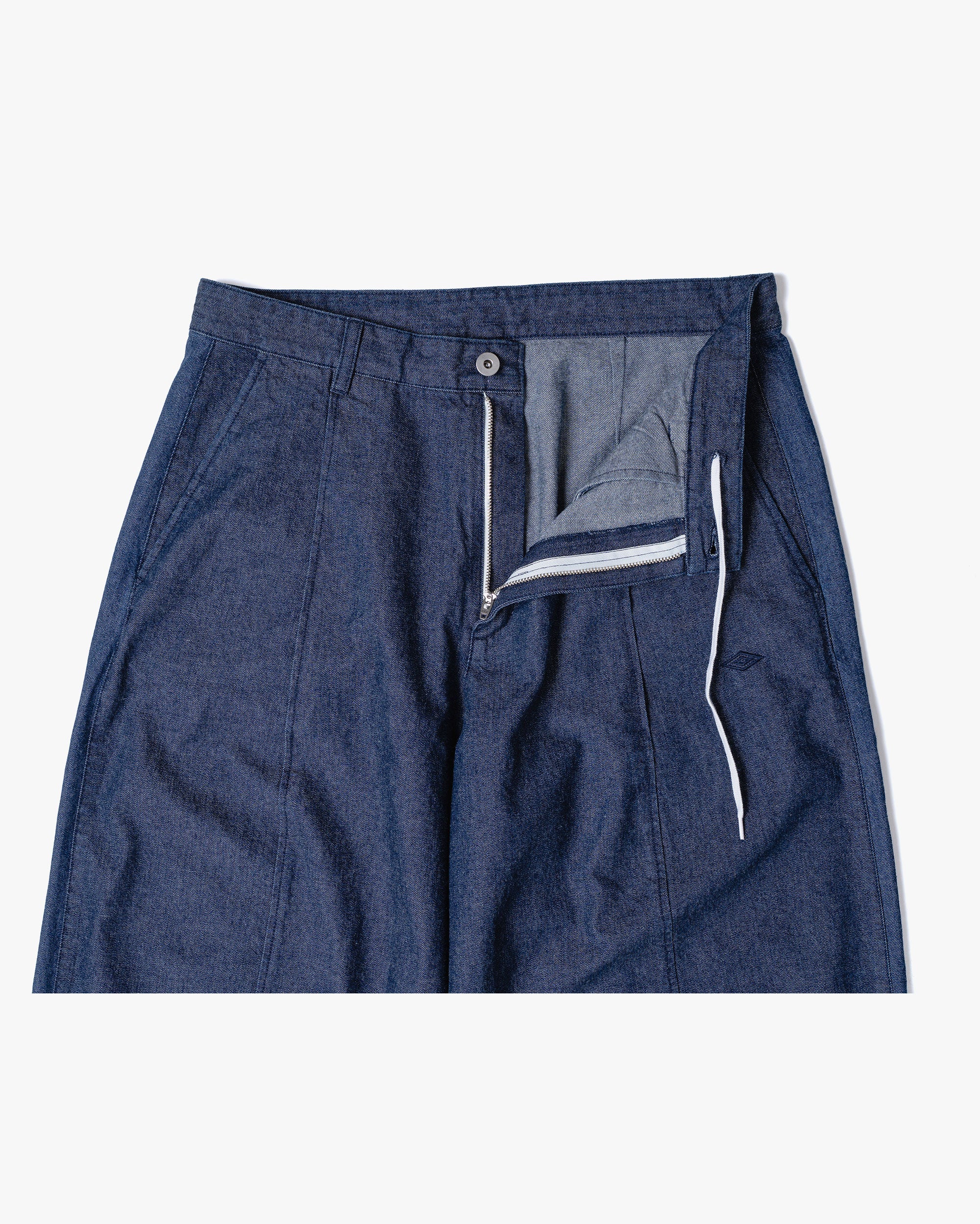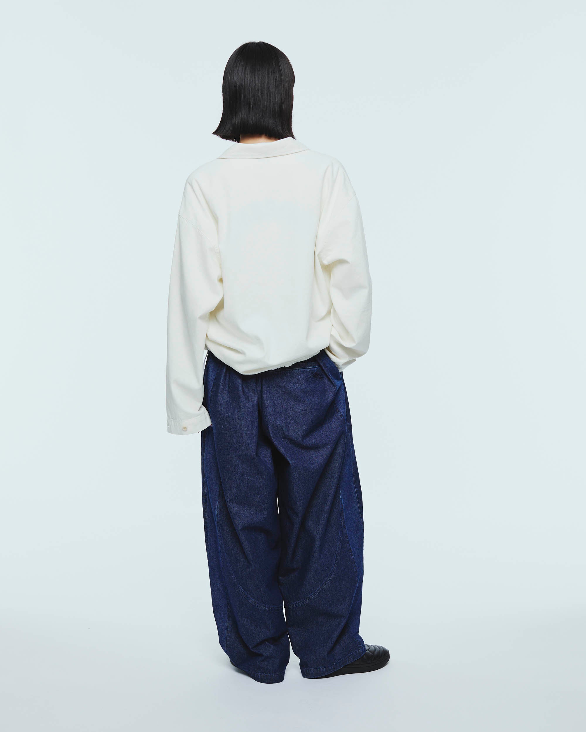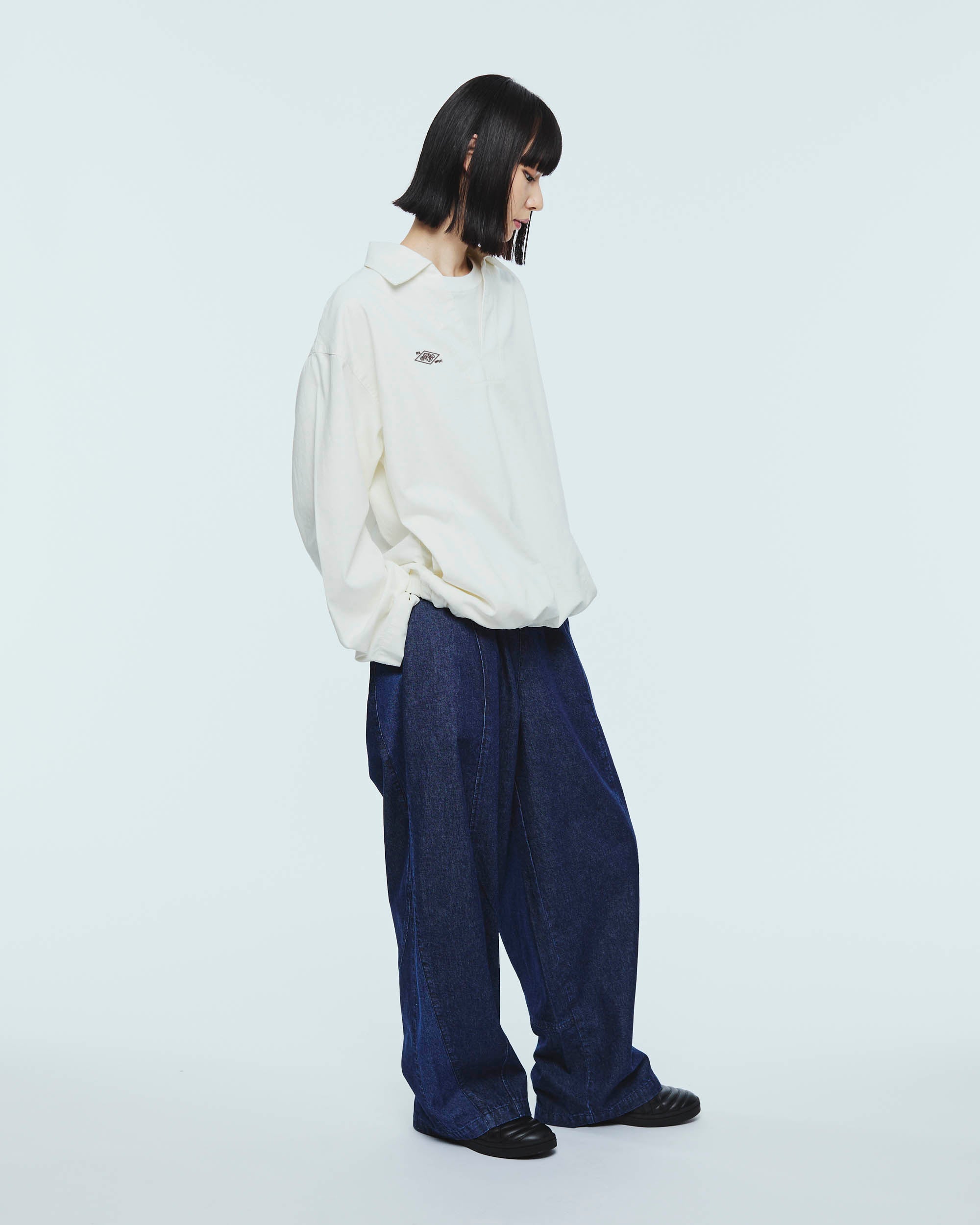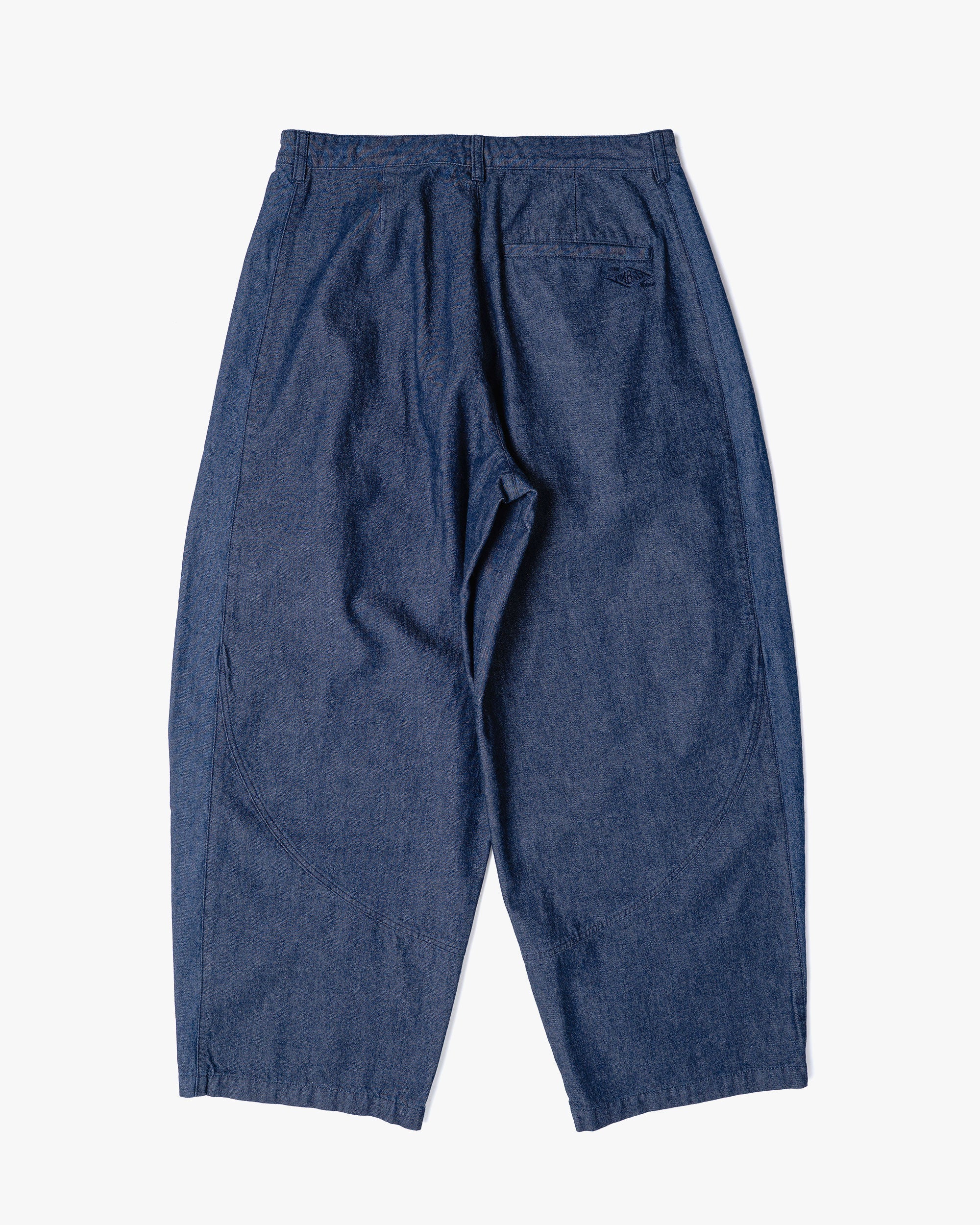 トレーニングパンツのカッティングから着想を得たデニムパンツ。腰から膝にかけて緩やかに膨らみを持たせた独特のシルエットが、スポーティさと程よい抜け感を演出する一着です。