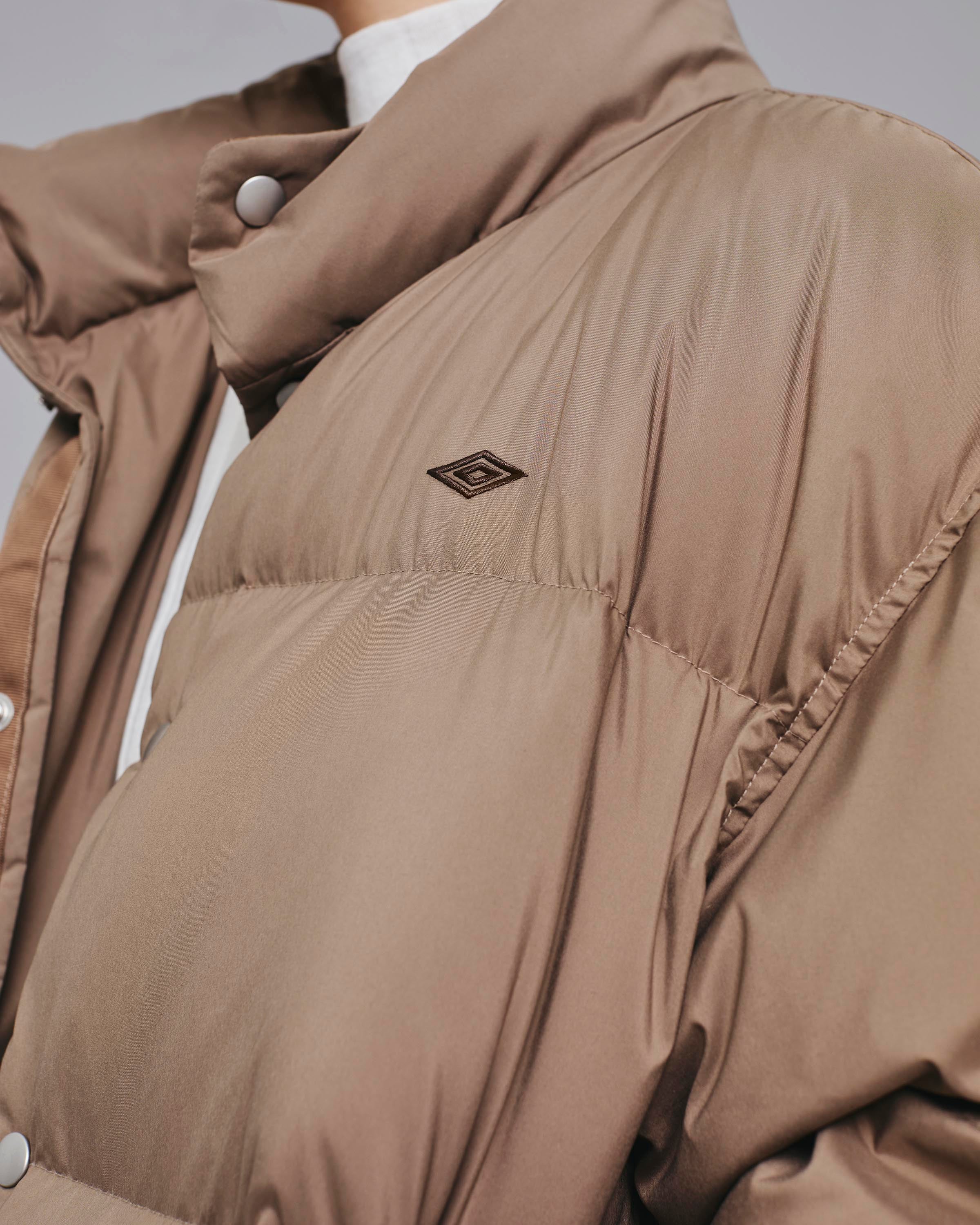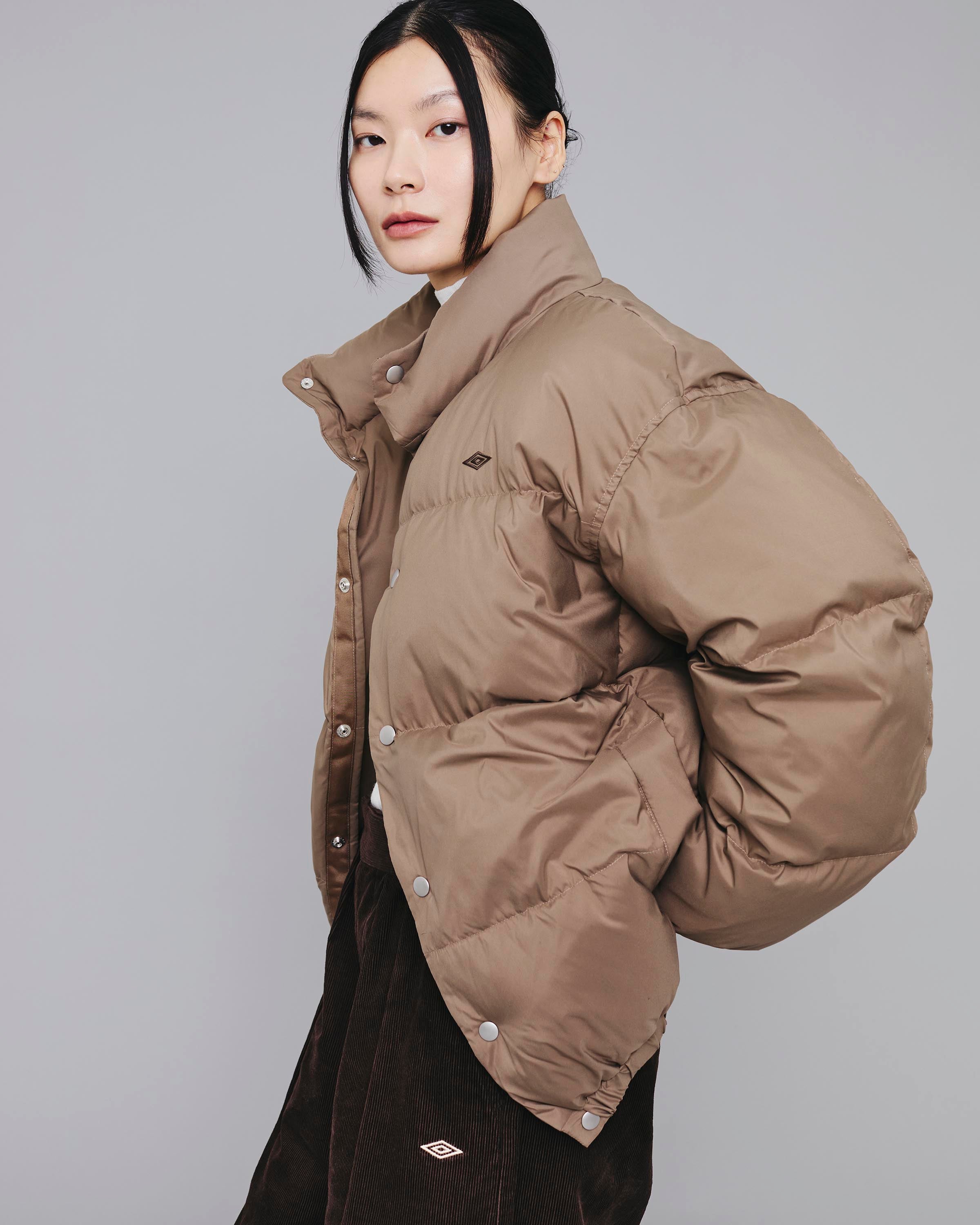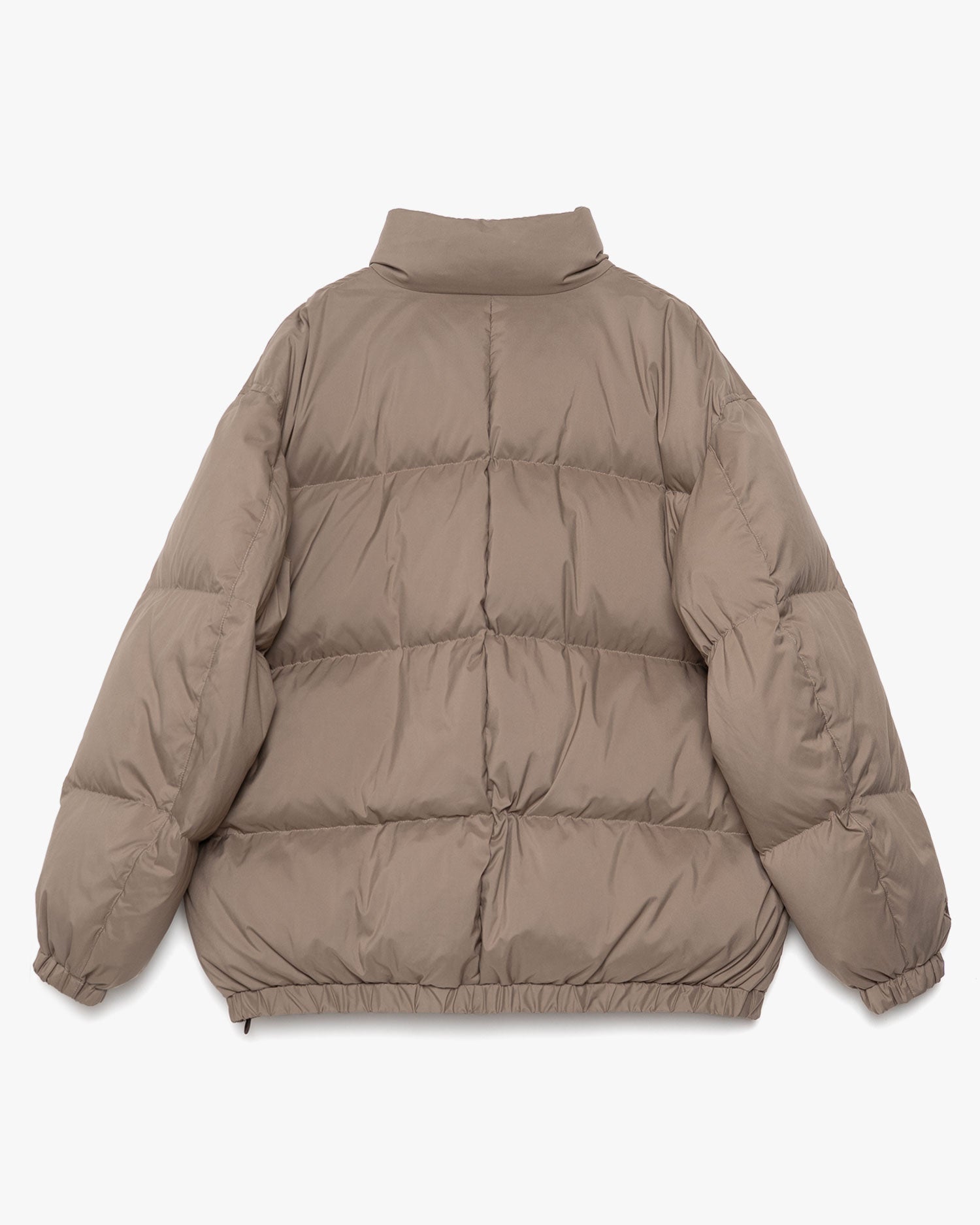 贅沢にダウンを使用したオーバーシルエットのダウンジャケットです。前開き部分にはメタルドットボタンをあしらい、さりげないアクセントを加えています。