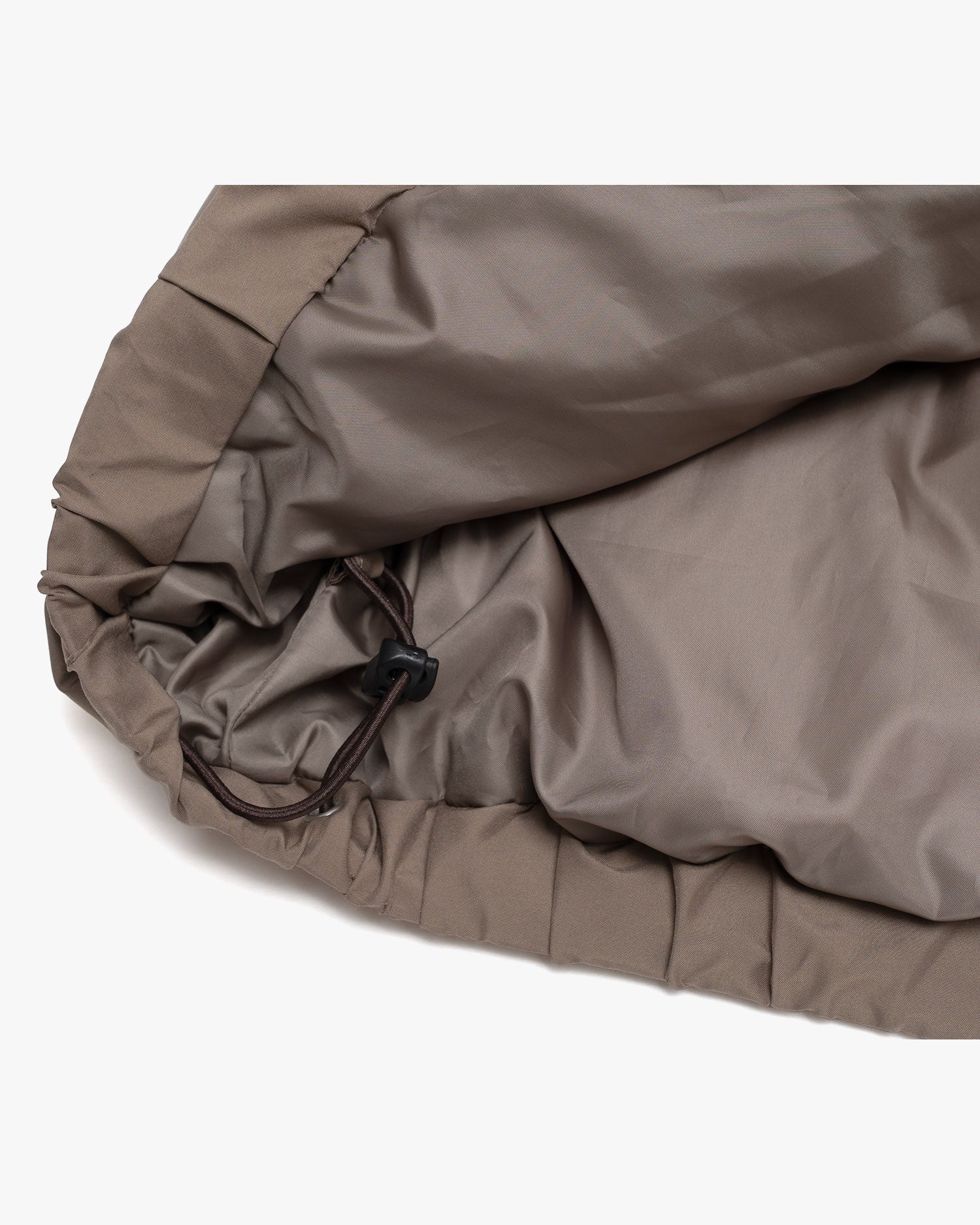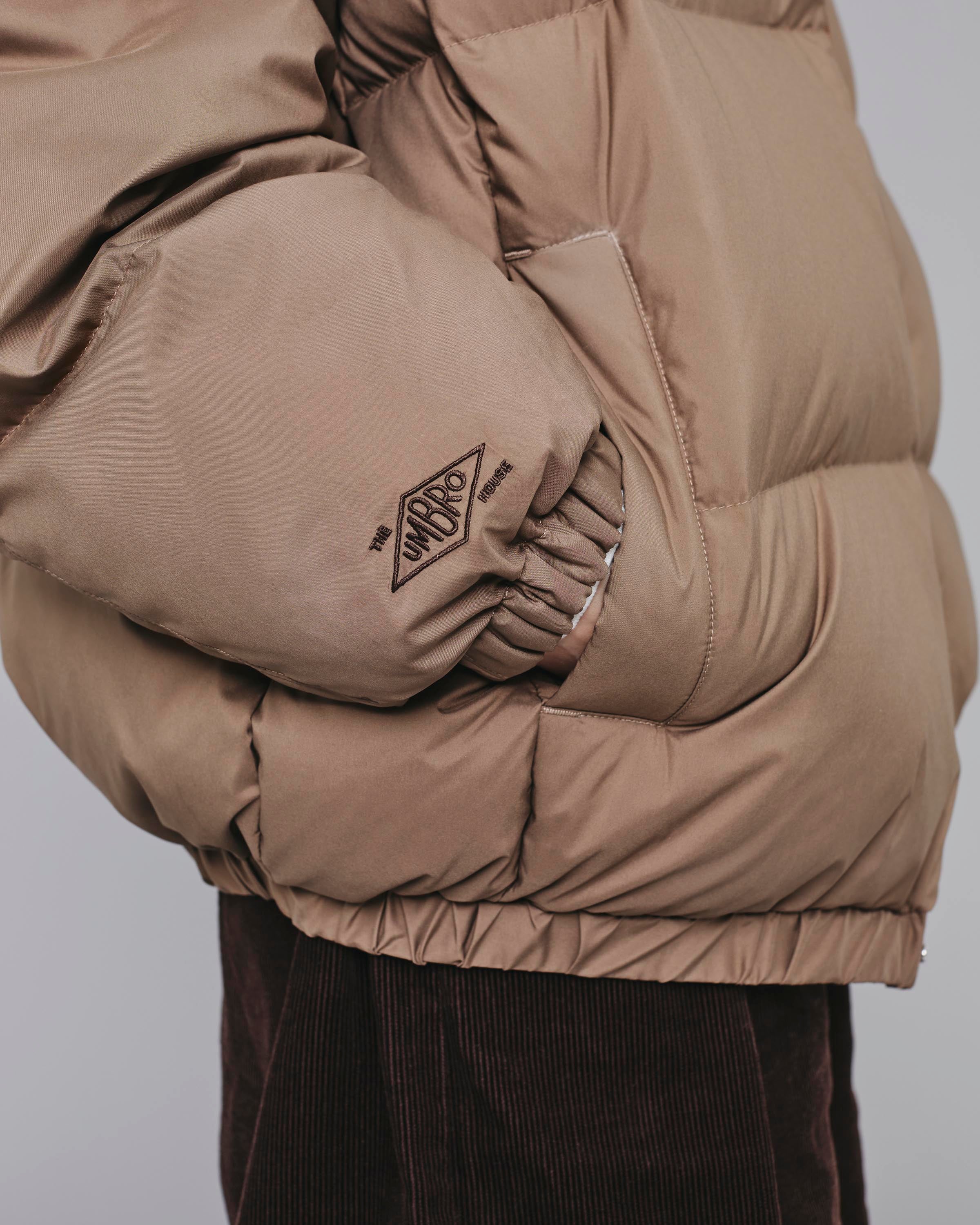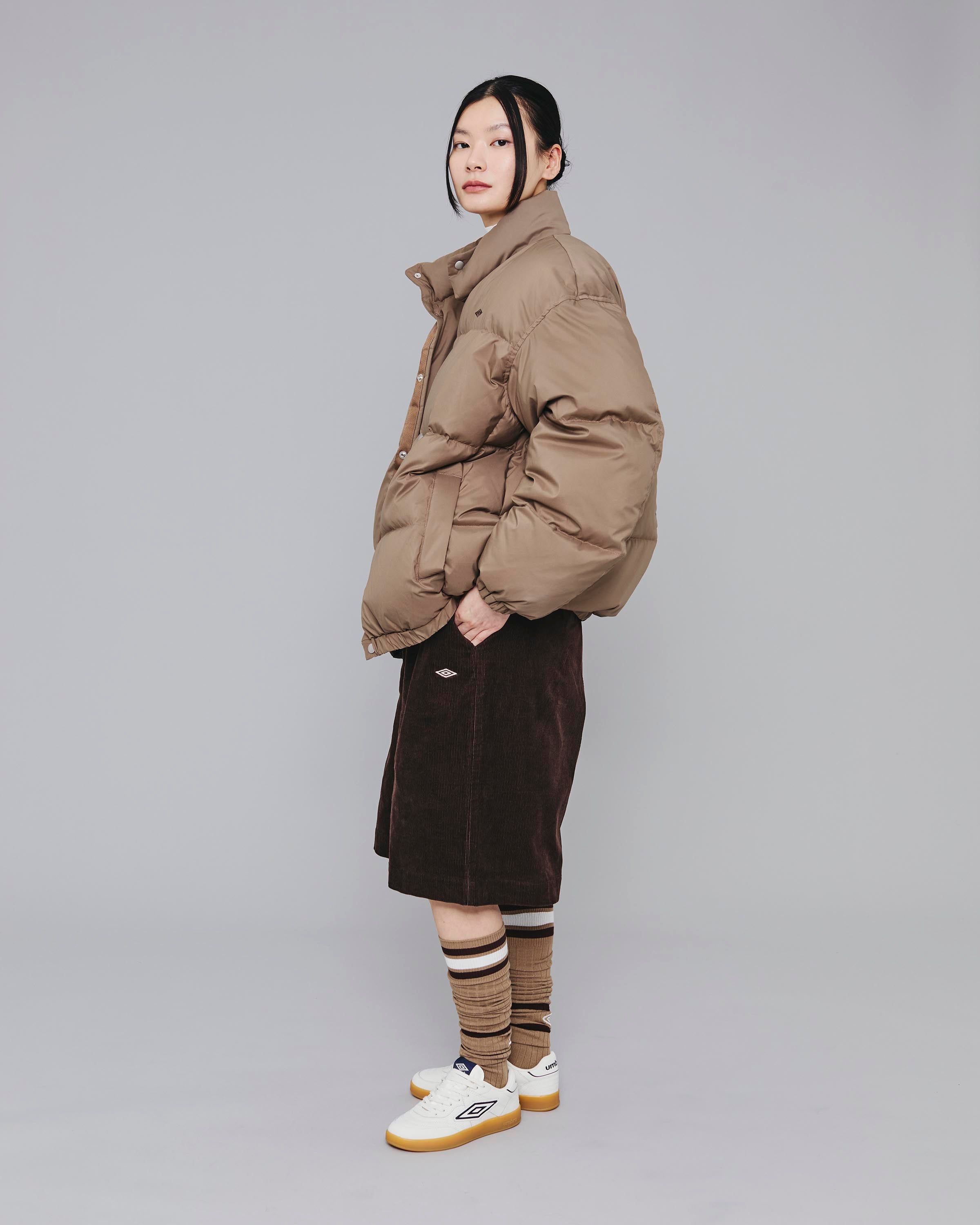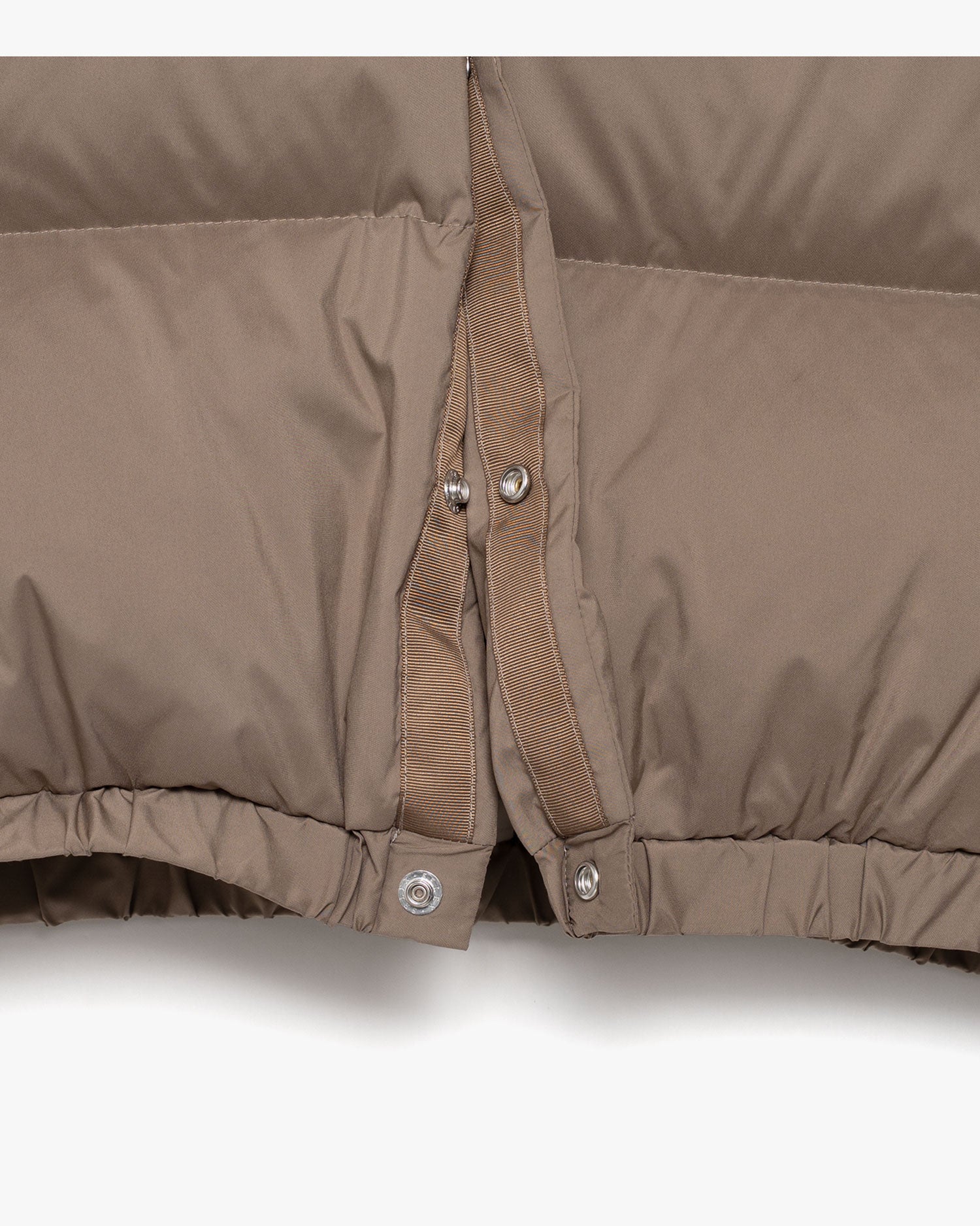 贅沢にダウンを使用したオーバーシルエットのダウンジャケットです。前開き部分にはメタルドットボタンをあしらい、さりげないアクセントを加えています。