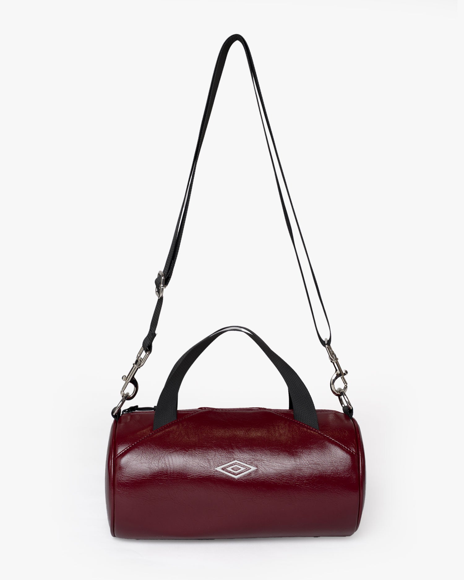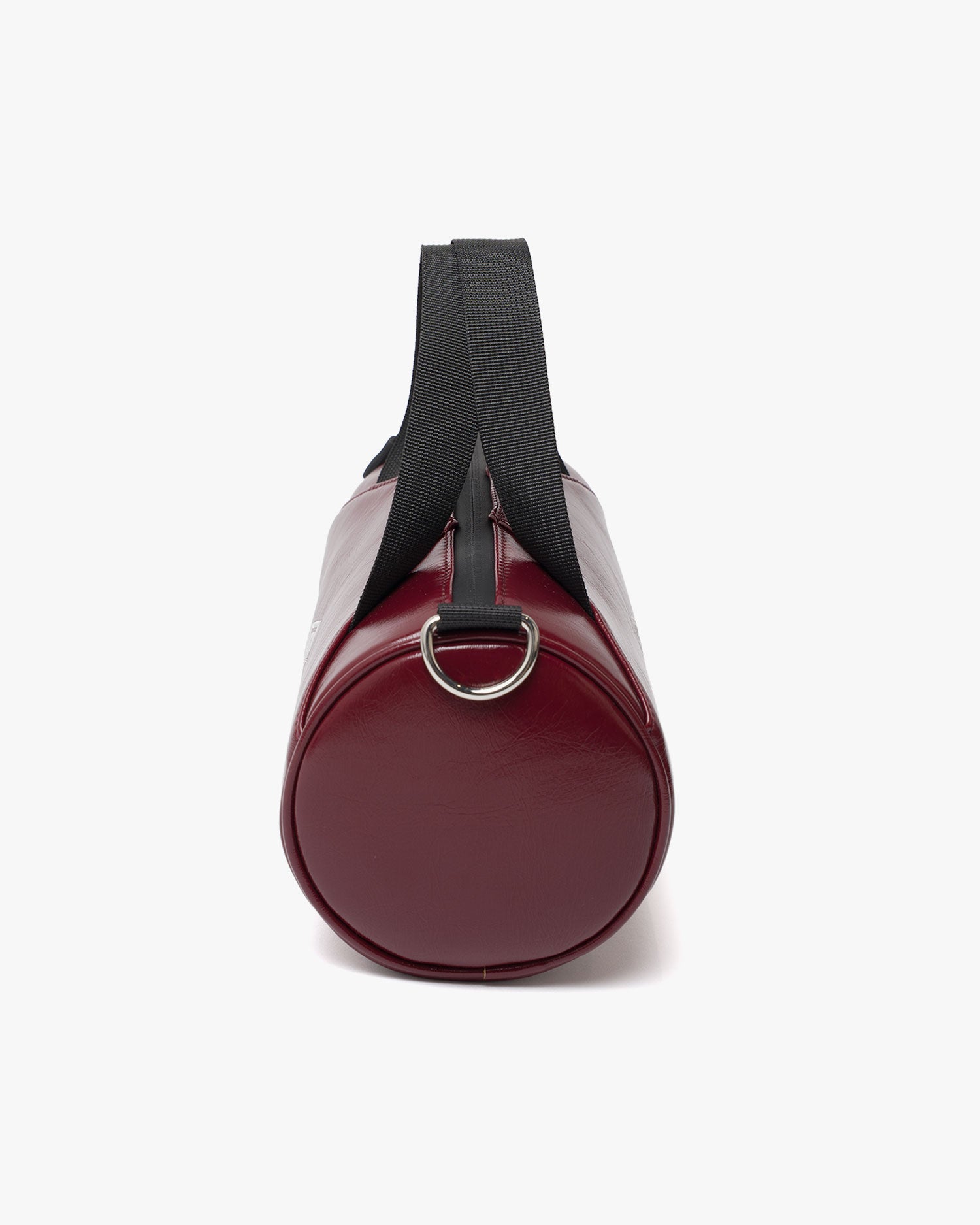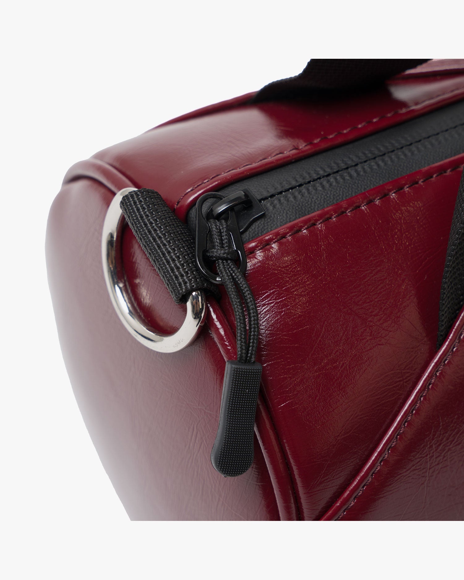 光沢感のあるクラックPUレザーを使用したミニボストンバッグです。止水ファスナーをアクセントに使い、別付けのショルダーストラップで肩掛けも可能です。