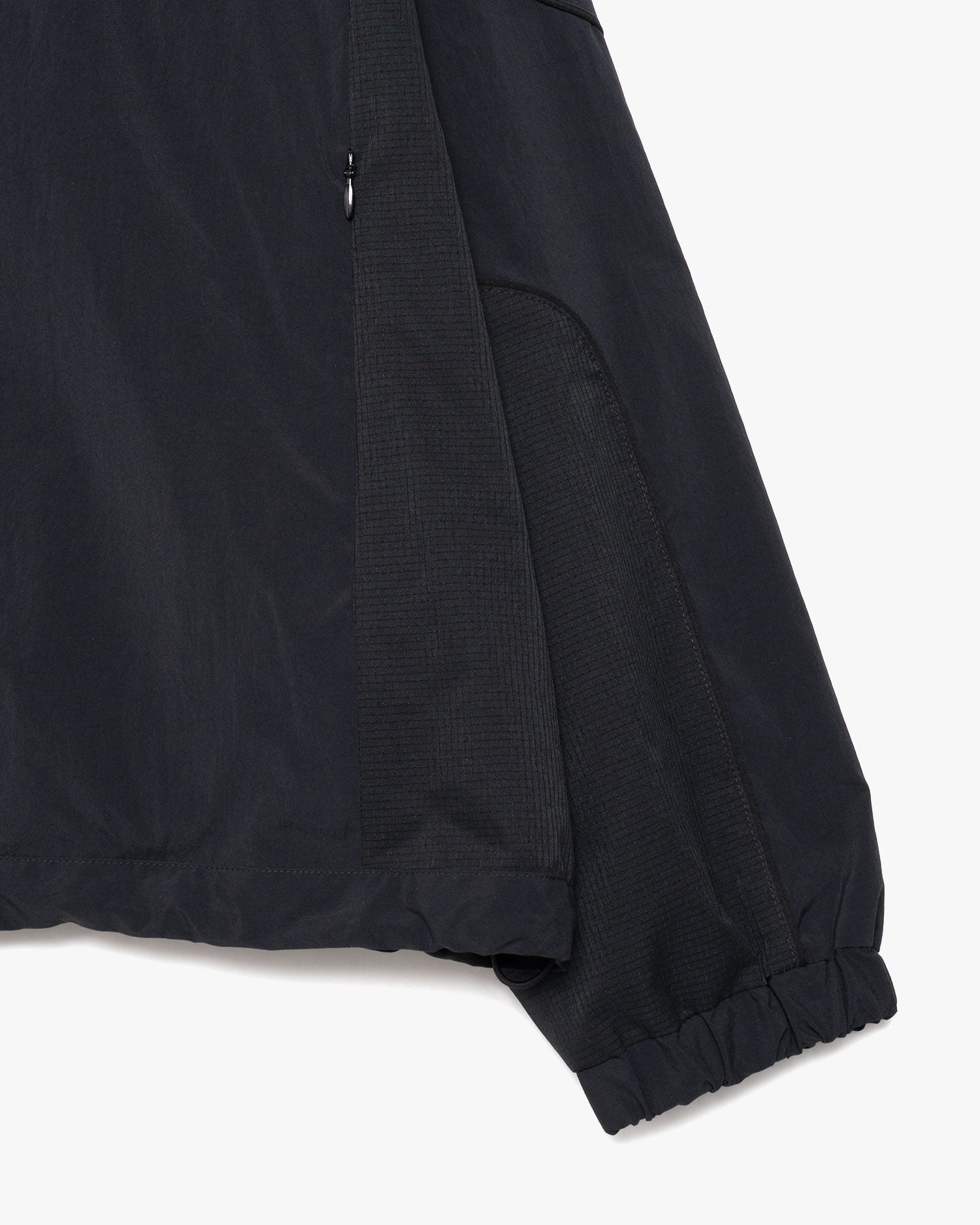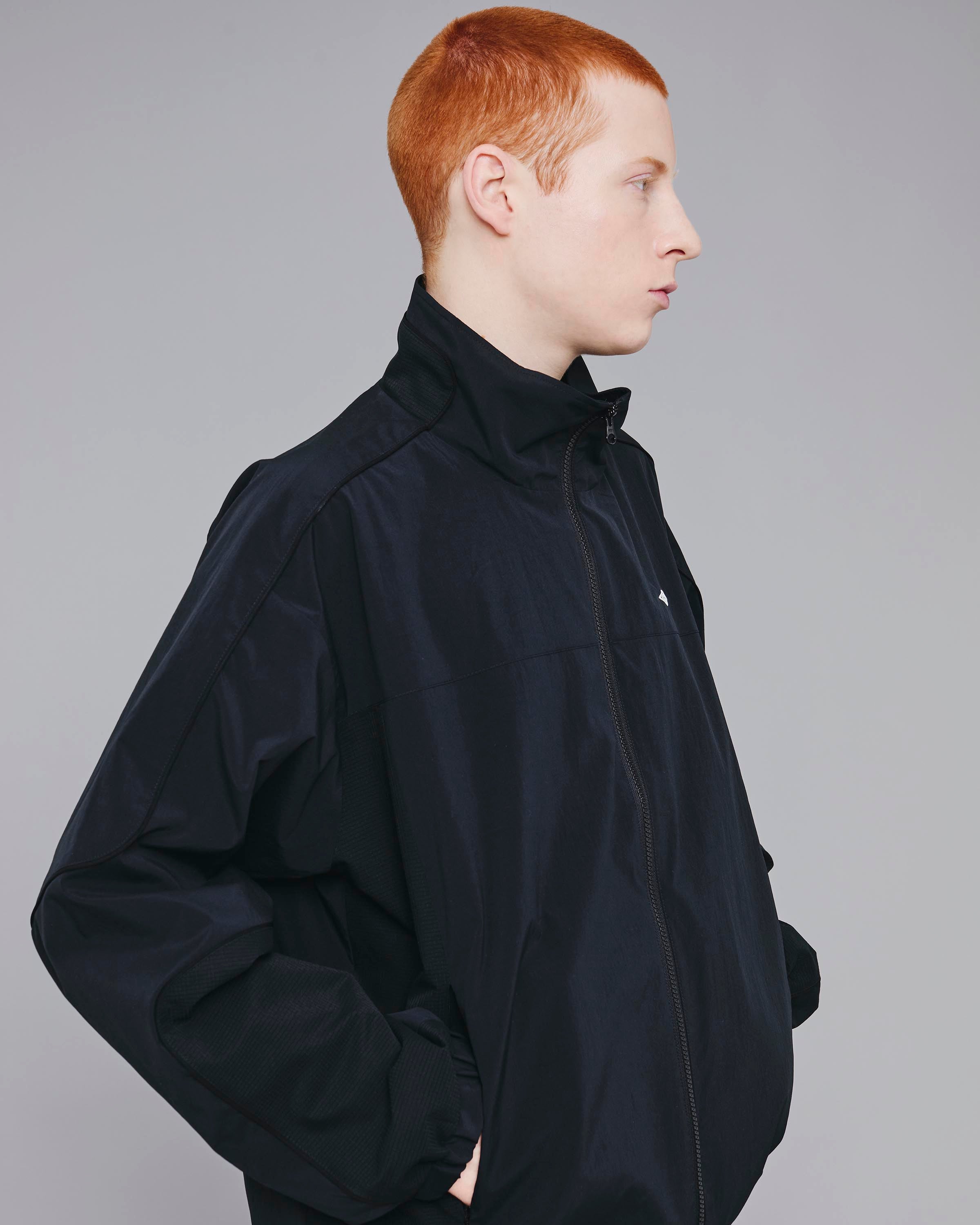 流線的なカッティングが特徴的なトラックジャケット。光沢を抑えたスパンライクなポリエステル素材を使用し、スポーティでありながら上品な印象に仕上げました。洗練されたシルエットと快適な着心地を兼ね備え、幅広いスタイリングに対応する一着です。