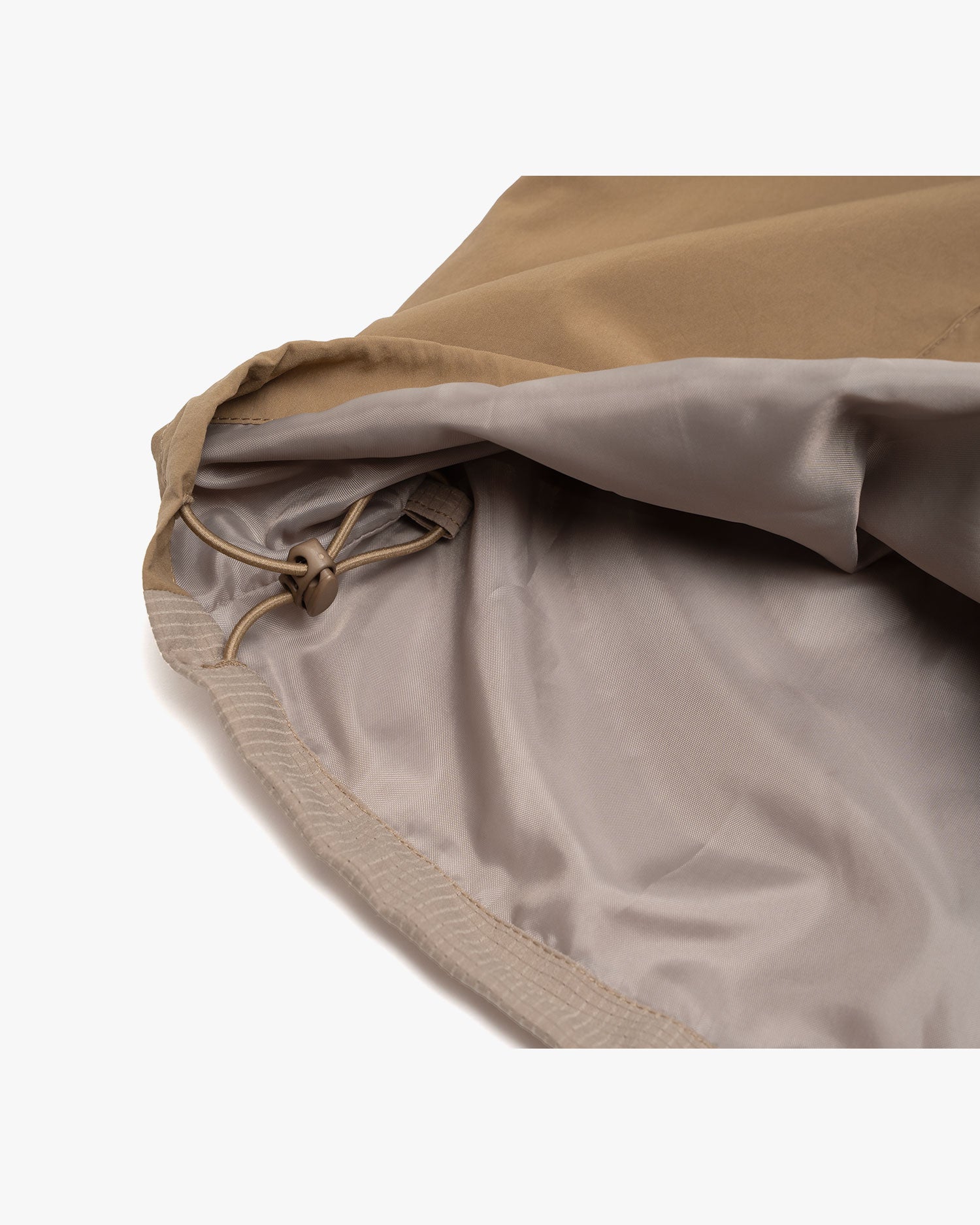 フィラメントながらにまるでスパンのような表情と風合いを表現したタイプライター素材にヴィンテージ加工を施しています。別布には特殊技術により施された通気孔のある多機能ポリエステル素材を使用しています。