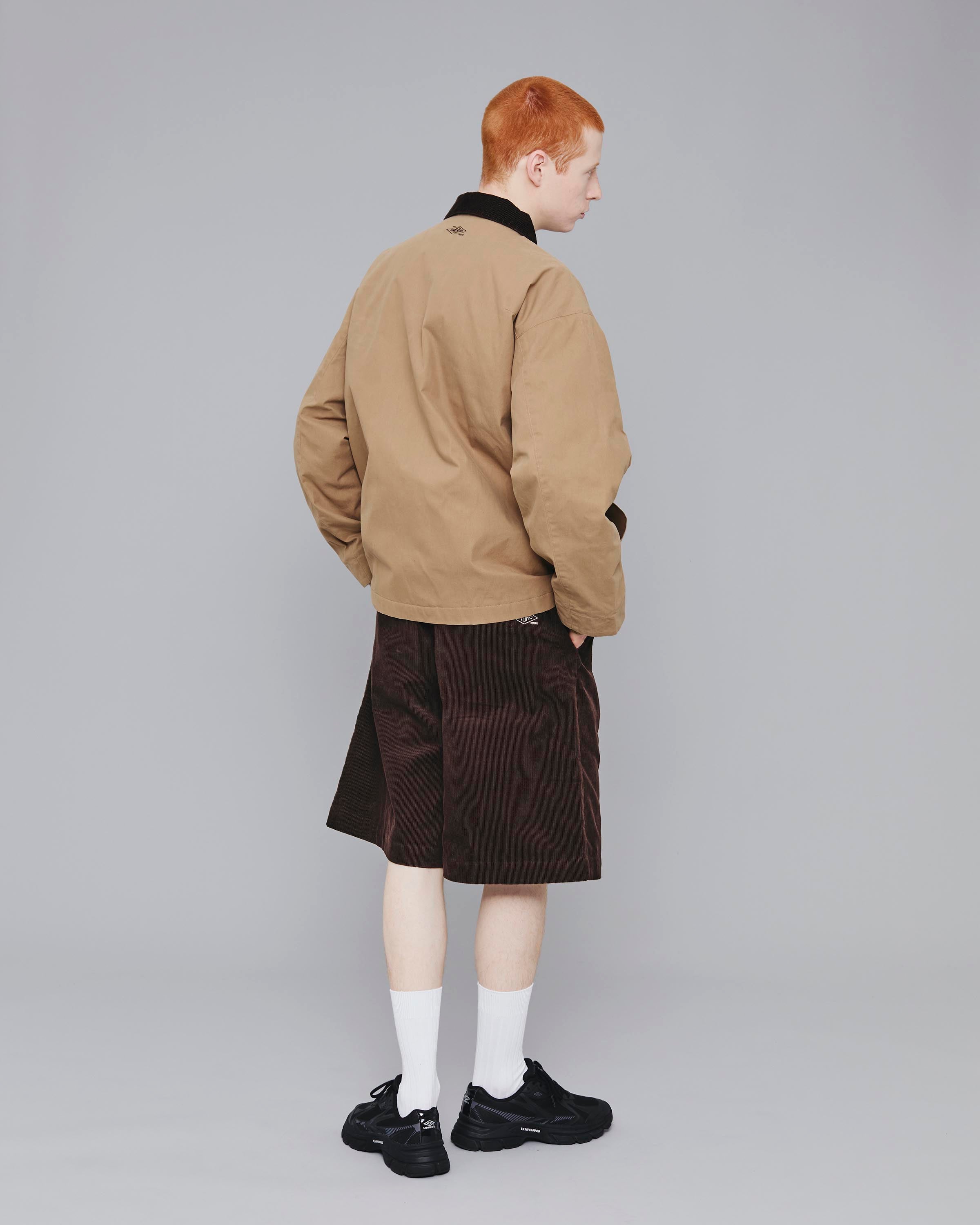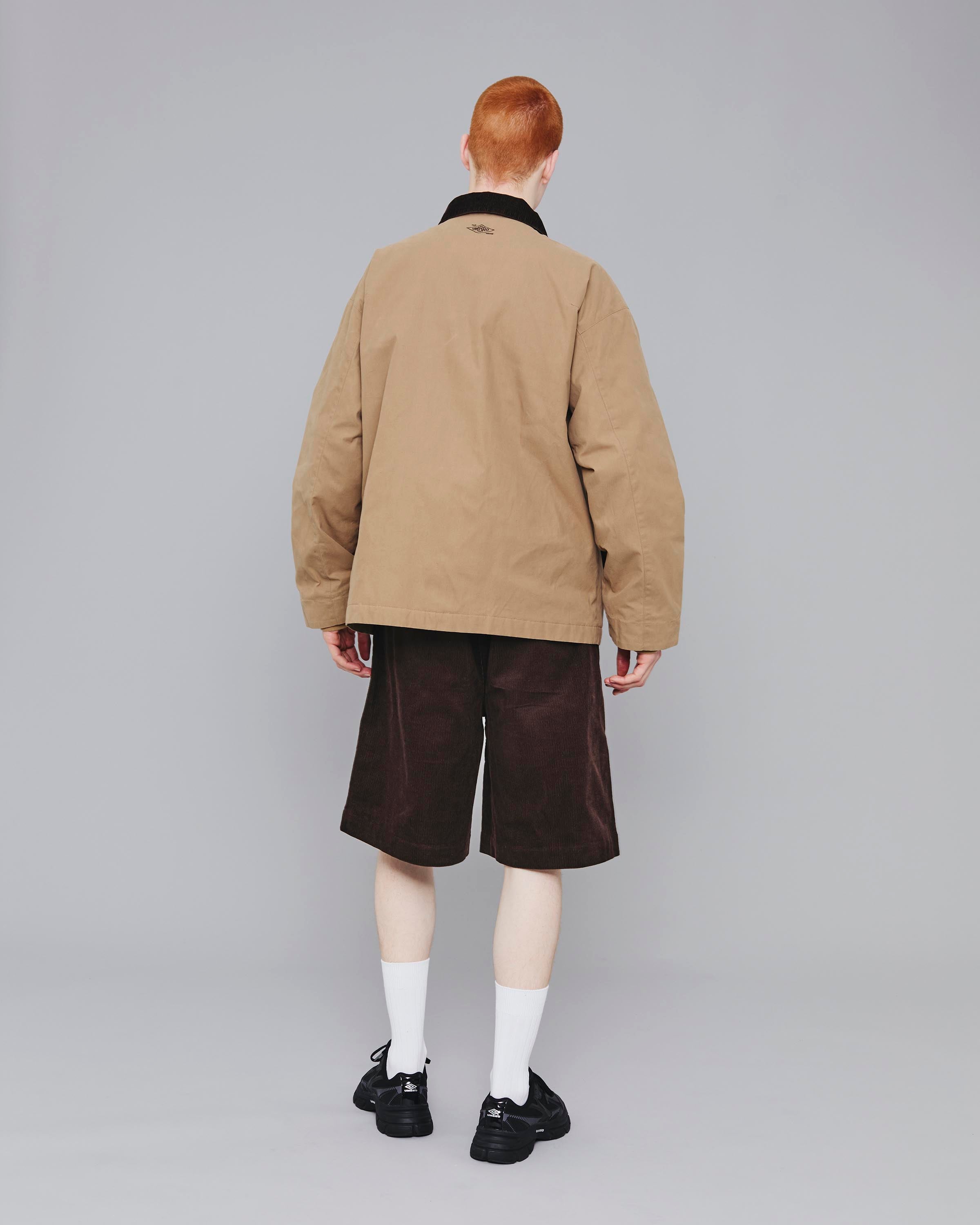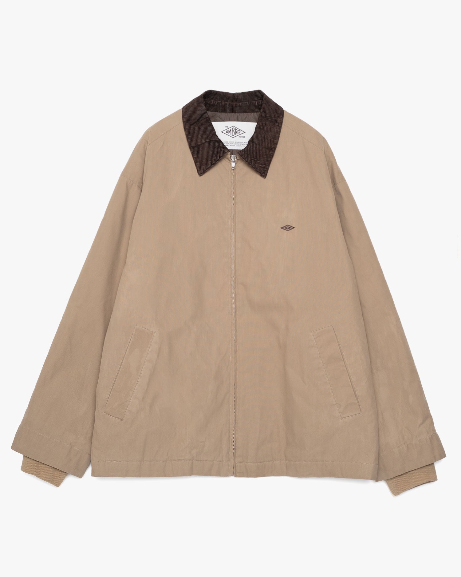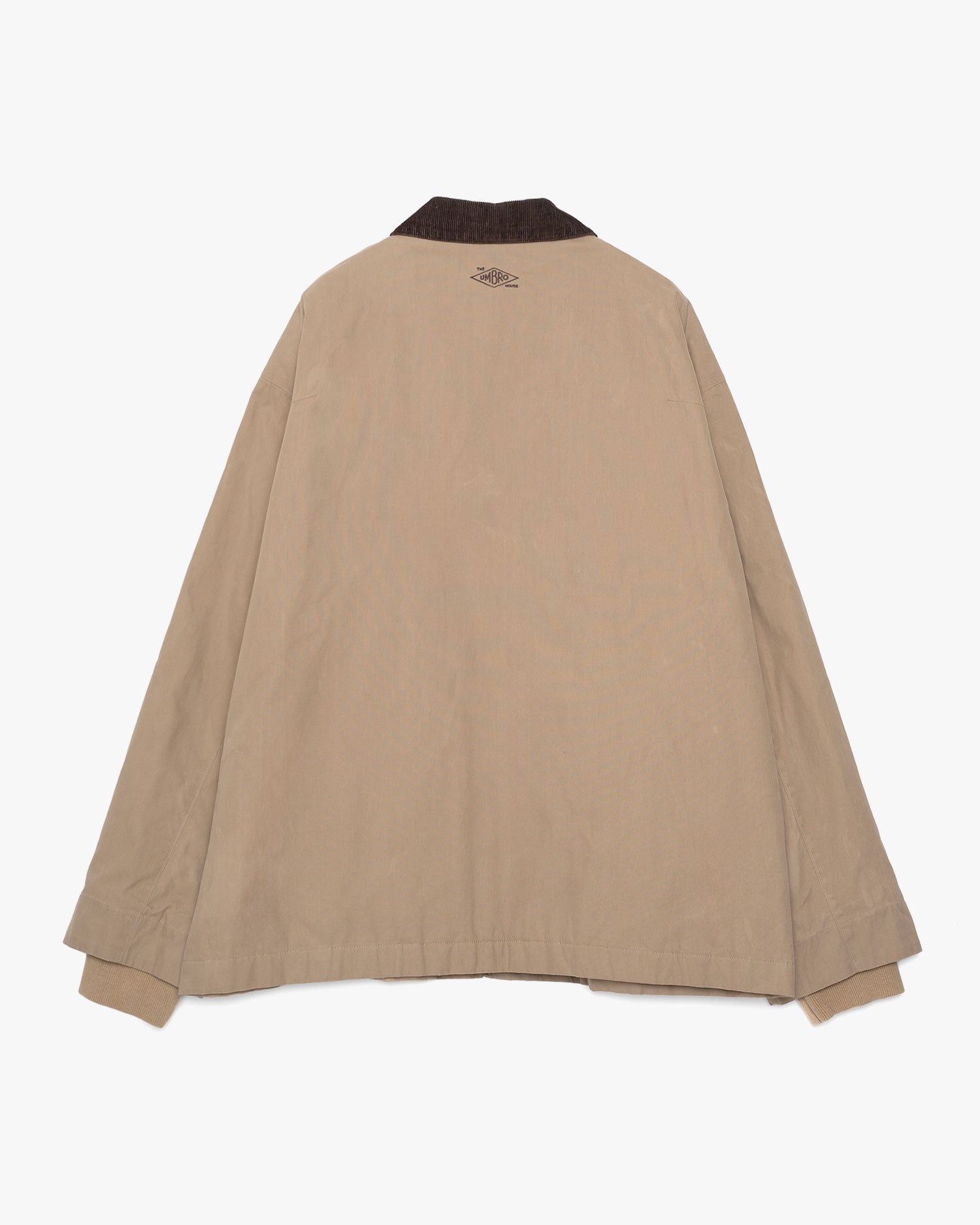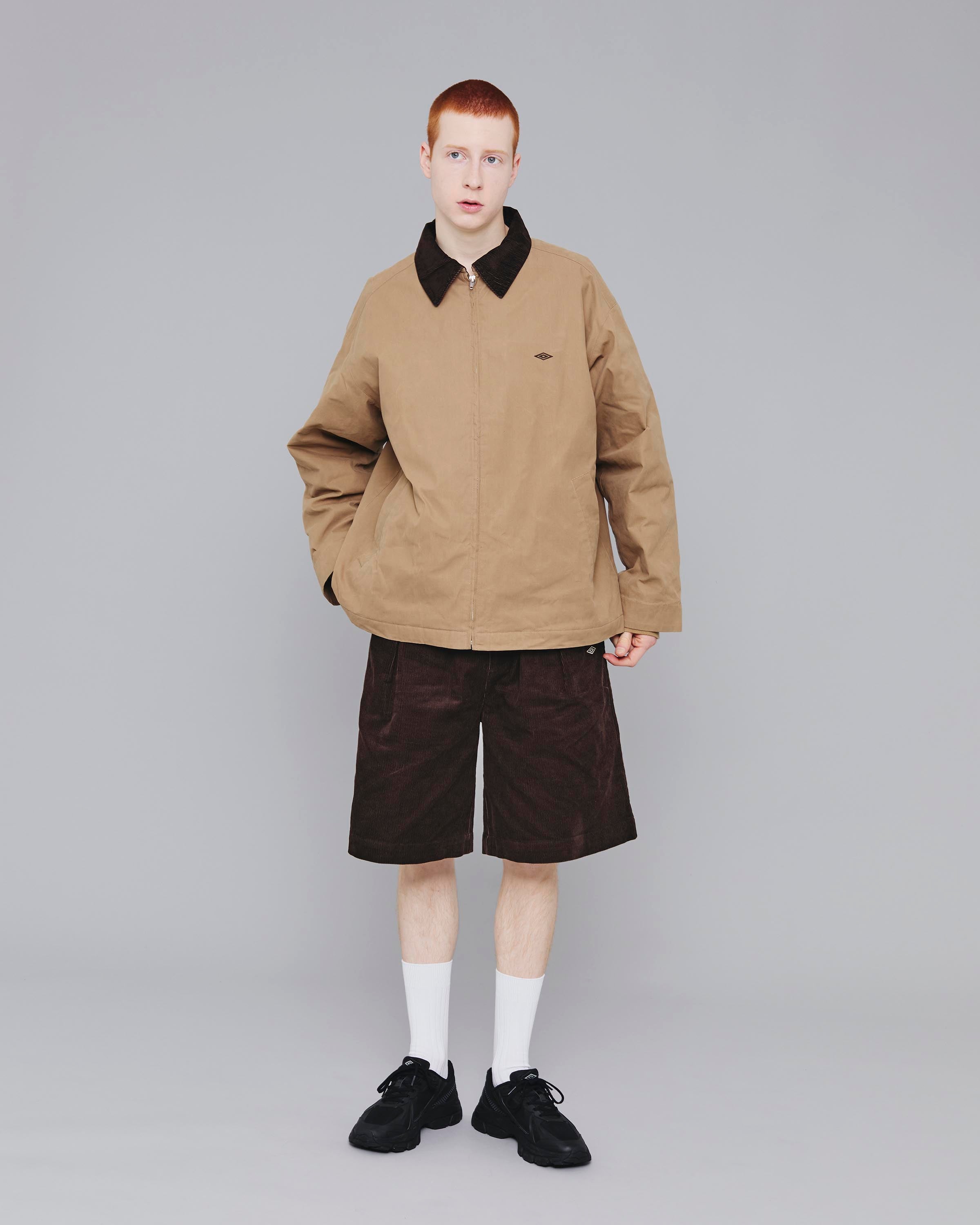 オイルドコットン素材に、襟部分にコーデュロイをアクセントとして配したブルゾンです。ワンウォッシュ加工を施すことで、独特の風合いを引き出しています。着丈はやや長めで、縦長のシルエットが特徴です。
