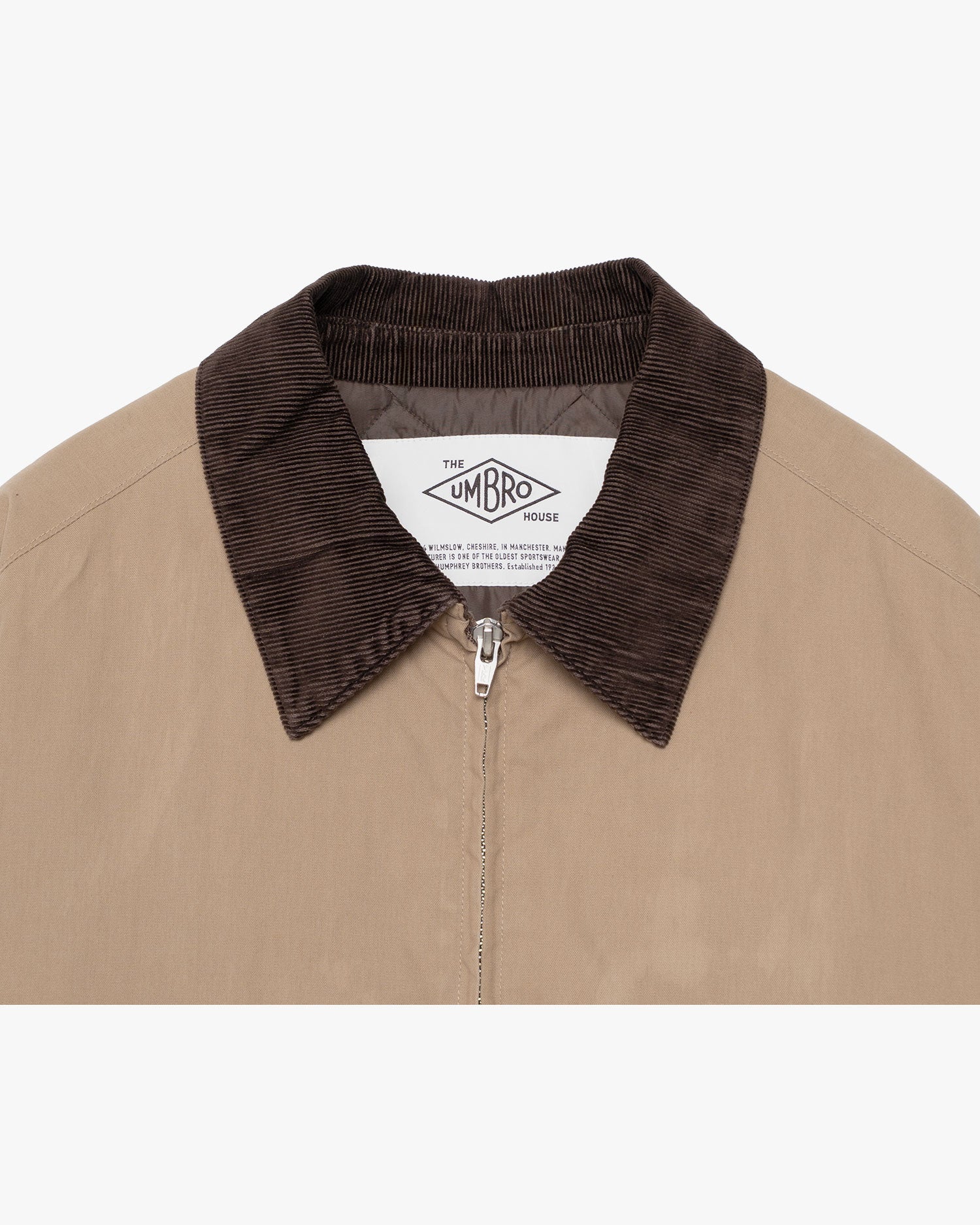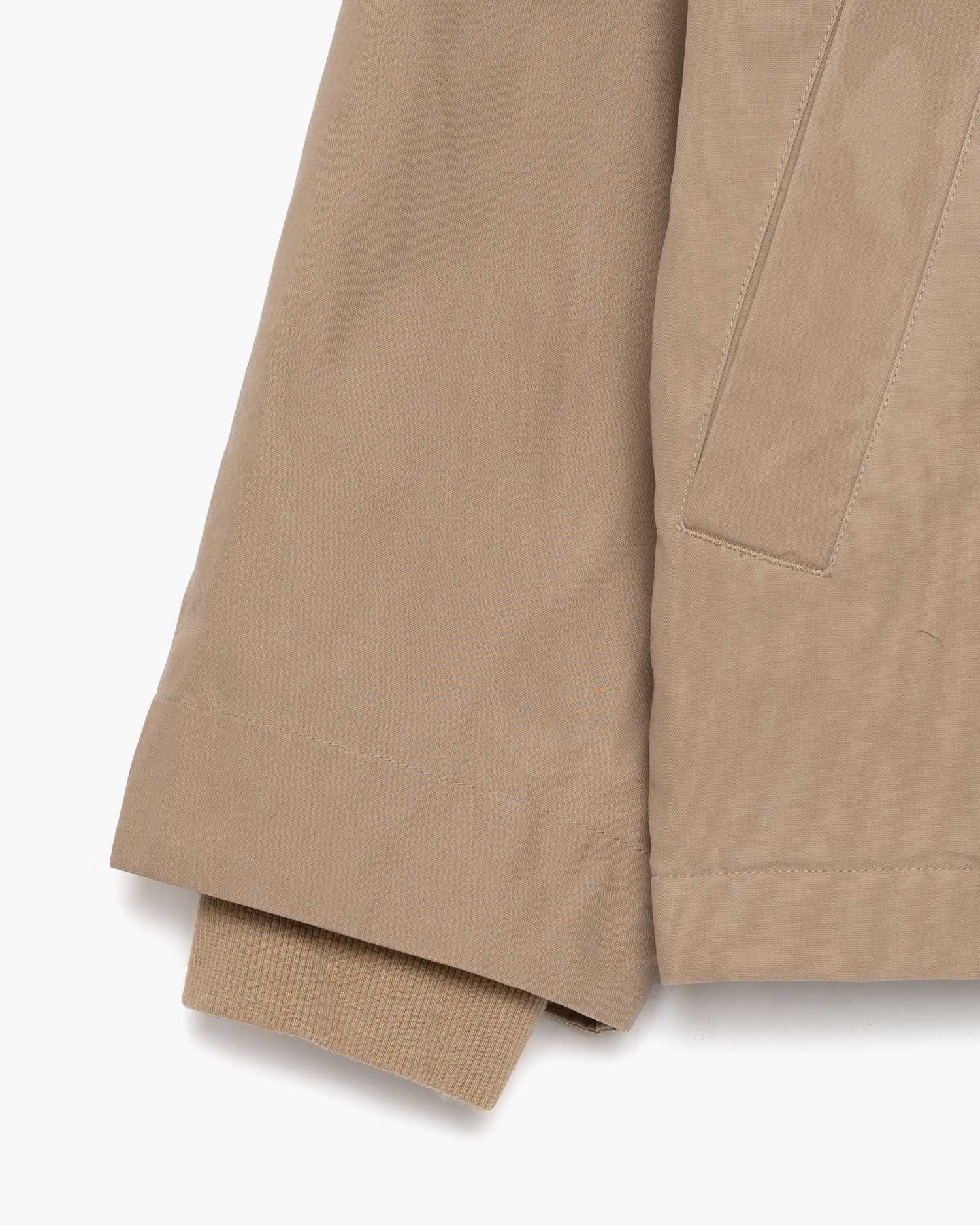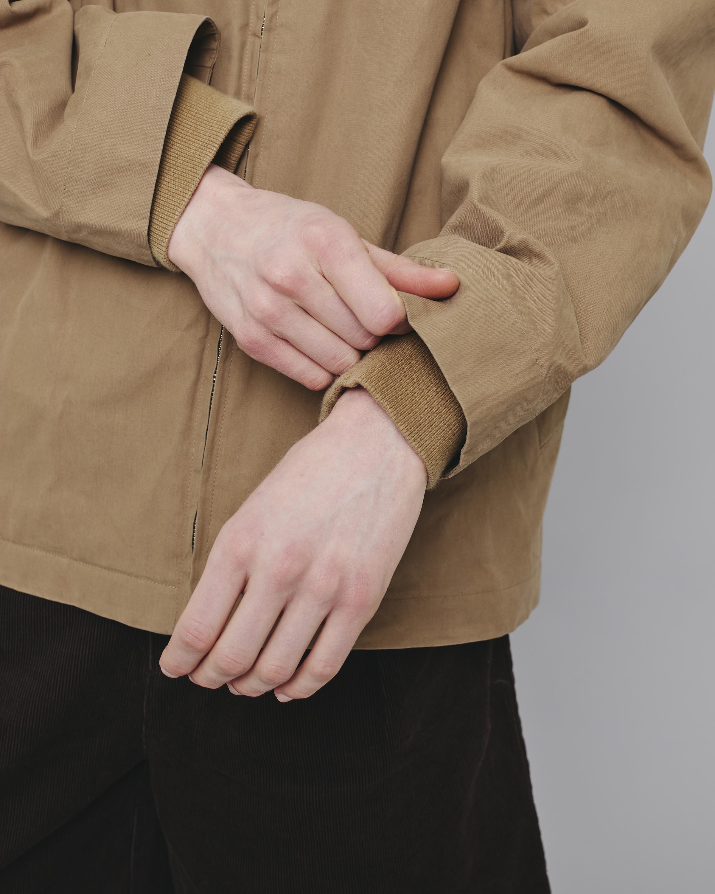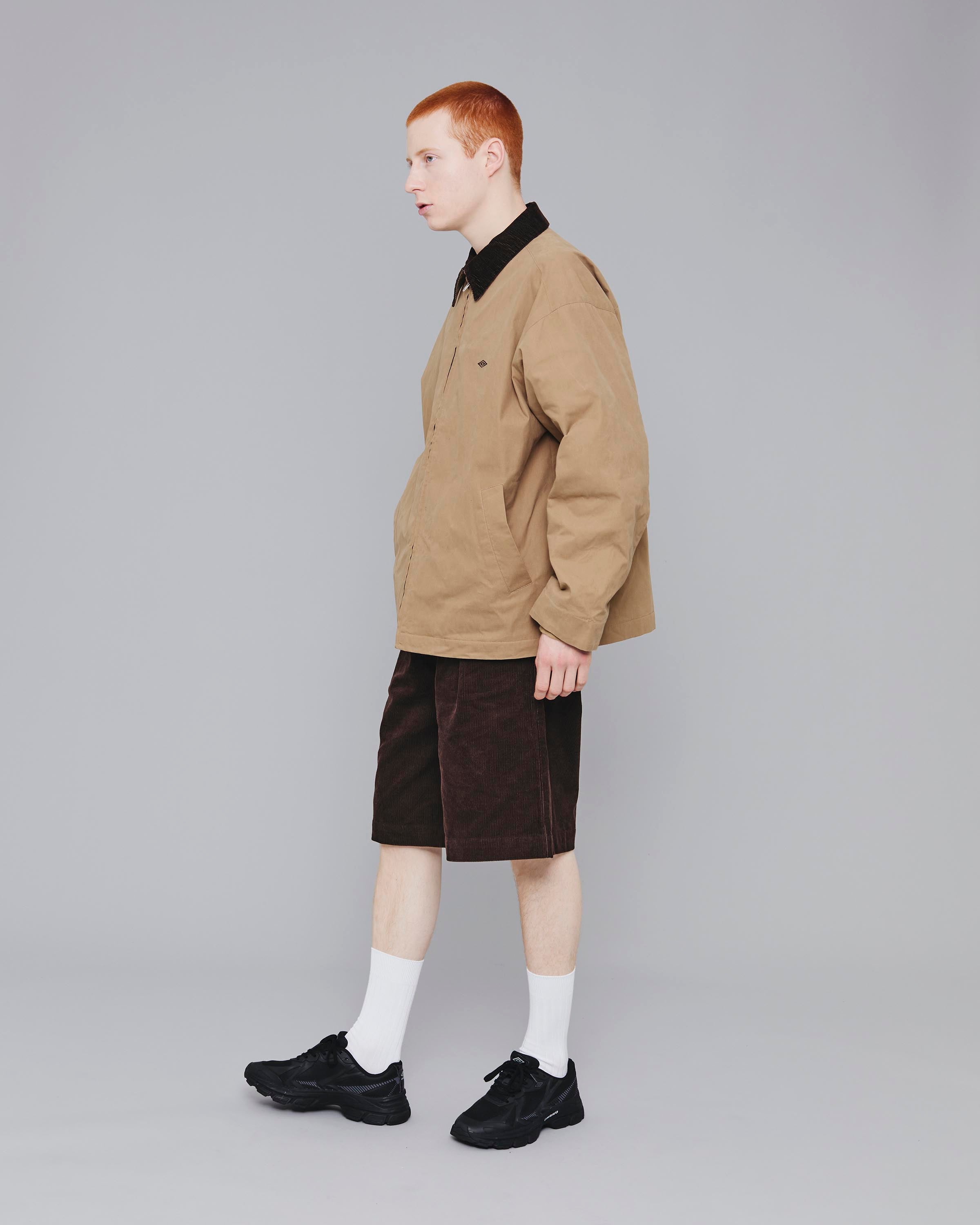 オイルドコットン素材に、襟部分にコーデュロイをアクセントとして配したブルゾンです。ワンウォッシュ加工を施すことで、独特の風合いを引き出しています。着丈はやや長めで、縦長のシルエットが特徴です。
